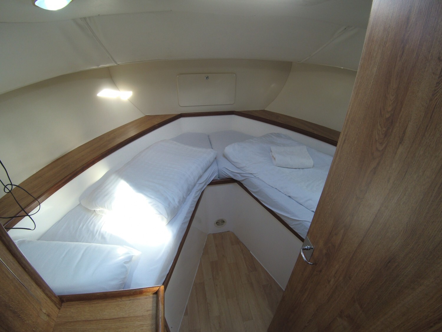 Features include: Master cabin with island double bed, 1 twin-bedded cabin, 2 bathrooms with electric toilets, convertible sofa in the saloon; plenty of storage; heating system and hot water tank; 12V and 220V electrical circuits with socket for shore power; cooker with oven, refrigerator; CD player; electric bilge pump; swim ladder