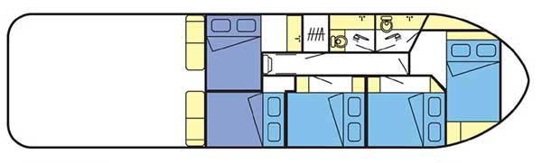The Sedan design is distinctively unique and provides the perfect boat for exploring the French canals. The superb saloon has a panoramic view and includes the skipper’s steering position. Large glazed sliding doors give direct level access to the rear sun deck – perfect for relaxing and dining under the integral canopy.