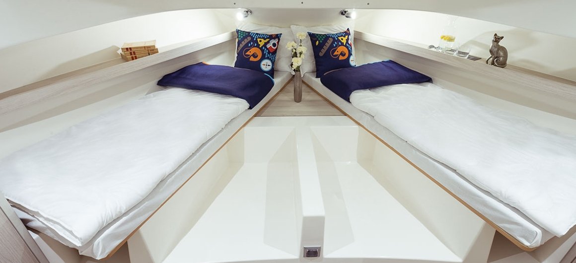- Bow and stern thruster for easier handling – the boat can be moved sideways to ease mooring