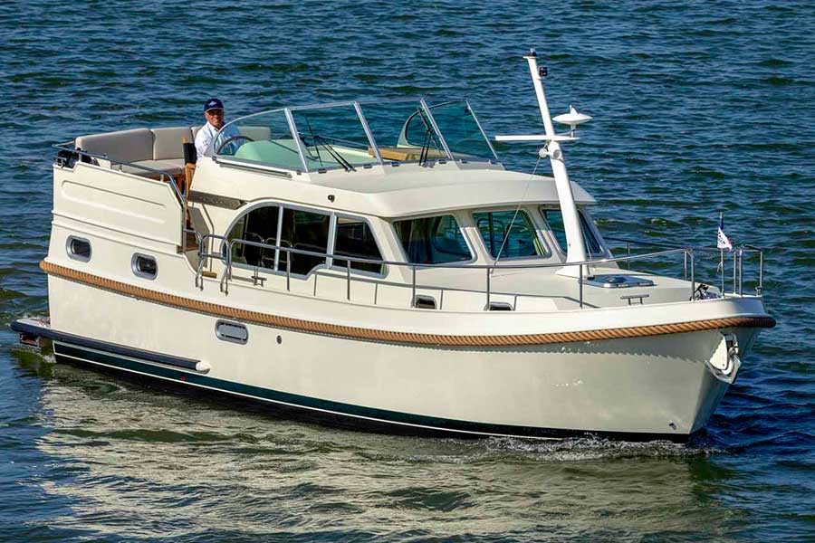 Cruising characteristics can simply be described as extraordinary. The Linssen special single-chine hull shape gives the yacht excellent stability and thanks to a combination of the new shape of the boat below the waterline, keel shape, rudder shape and rudder balance ratio, the boat also handles well in reverse, even against the direction of rotation of the propeller.