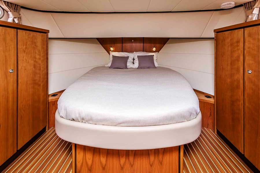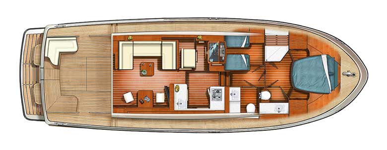 The 45.0 AC and 45.0 SE are stable and easily manoeuvrable motor yachts on which you can cruise many of the inland waterways, rivers, canals and lakes of Europe. They are also CE rated as ‘B’ – built to navigate on the offshore waters (200 miles and less) and can sustain wind conditions up to force 8 and wave conditions up to 4 metres high.