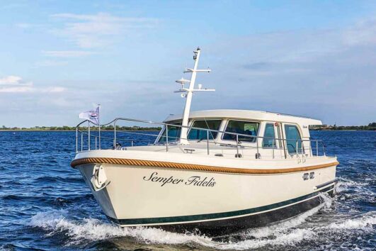 This full (single-chine) hull shape, the new design below the waterline, including the keel and rudder construction, and the deck design, together offer the Linssen owner important benefits. It ensures that when cruising, you will experience less resistance, less noise and use less fuel.