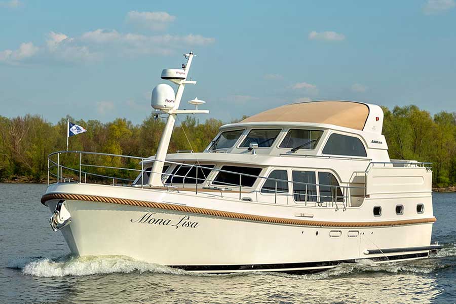 This full (single-chine) hull shape, the new design below the waterline, including the keel and rudder construction, and the deck design, together offer the Linssen owner important benefits. It ensures that when cruising, you will experience less resistance, less noise and use less fuel.
