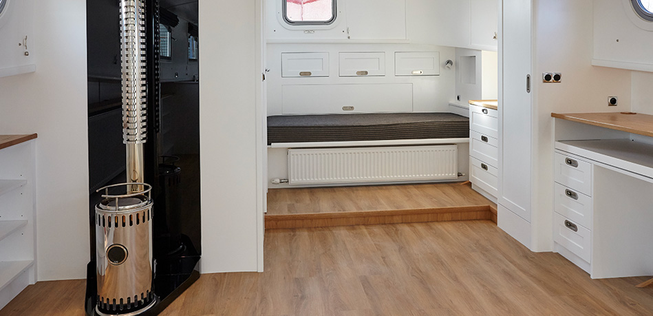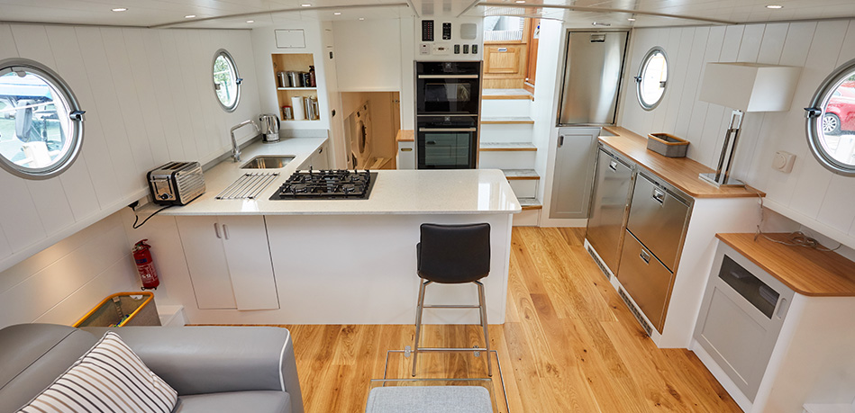 The extended version of the 49L Luxemotor Class Dutch barge offers a longer saloon –  a larger area in which to relax and socialise in the living area and galley.
