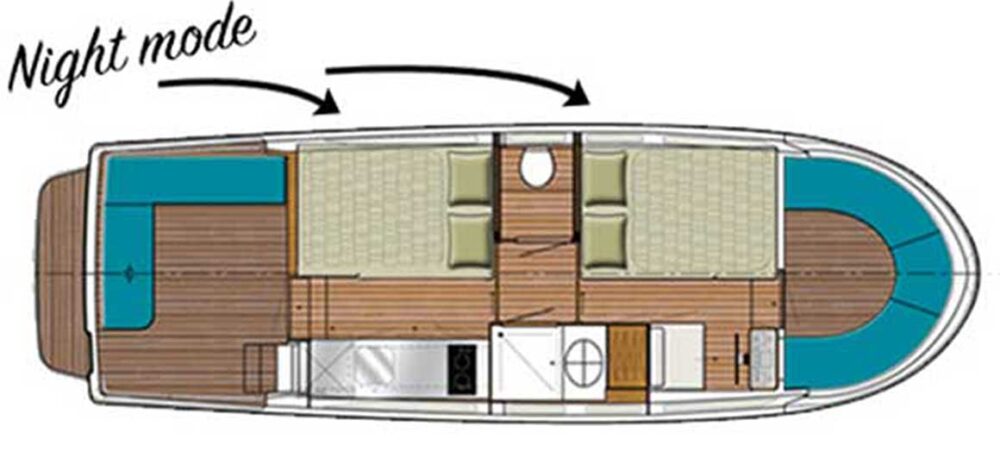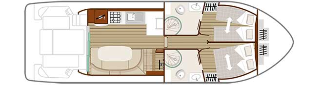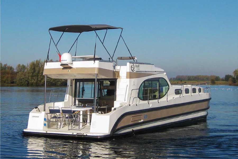 The Locaboat Pénichette Evolution 950E combines the best of the three existing Pénichette families: the Classique, the Aft-Deck and the Flying Bridge. The Evolution 950E sets new standards in luxury cruising and is perfectly suited for up to 4 people.